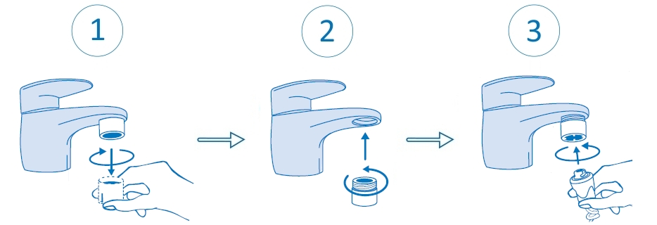 Per collegare Pink Shower basterà sostituire (solo la prima volta) il filtro del proprio rubinetto con uno dei filtri speciali Pink Shower in dotazione, adatti sia per attacco maschio che femmina.